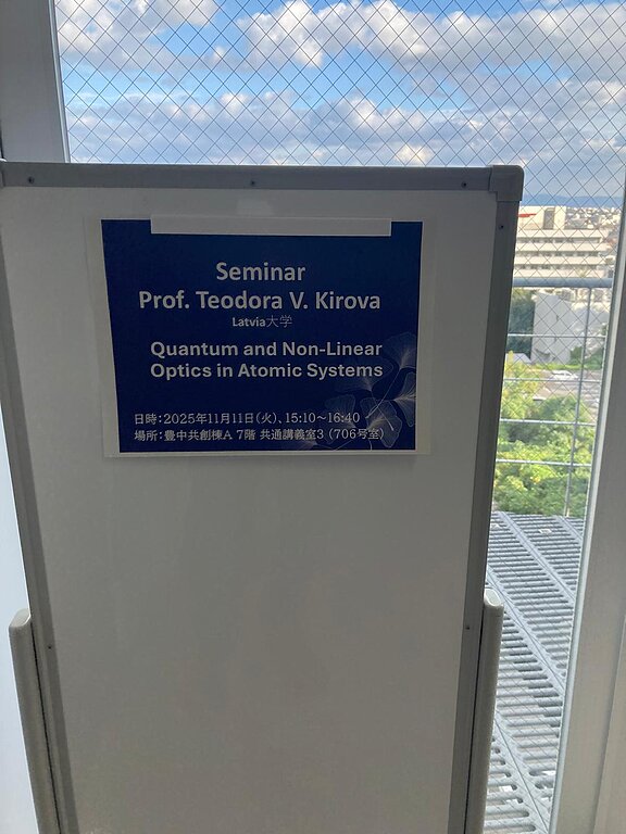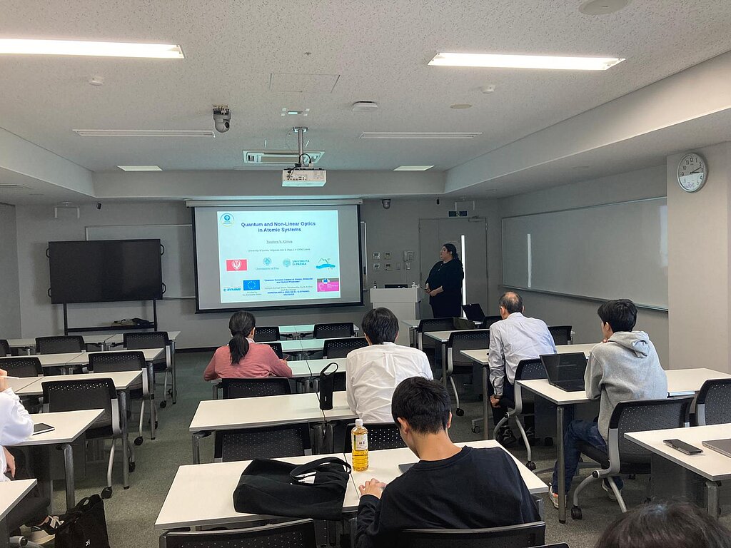On 11th November 2025 while seconded to the University of Electro-Communications, the project coordinator Dr. Teodora V. Kirova was invited to present a seminar "Quantum and Nonlinear Optics in Atomic Systems" at the Center for Quantum Information and Quantum Biology (QIQB), University of Osaka. She also paid a visit to various labs including "Quantum Computing" and "Quantum Information Device" ones, where she familiarized herself with the third superconducting quantum computer in Japan, as well as the experimental setups for ultracold neutral atom trapping, ion trapping, and optical tweezer arrays.